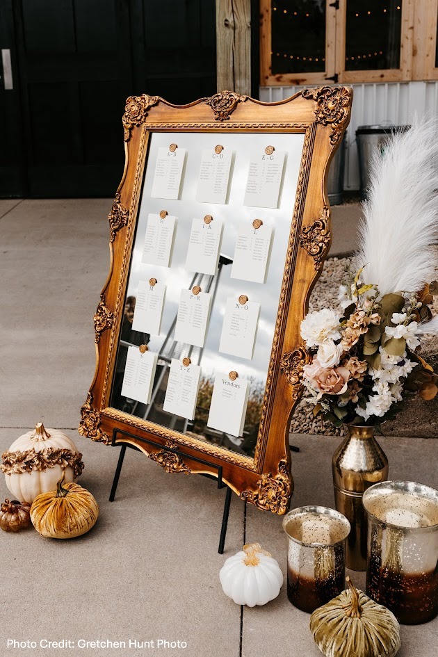 Help escort your guests to their tables by presenting their table seating on our mirrors, frames, shelving and easels.